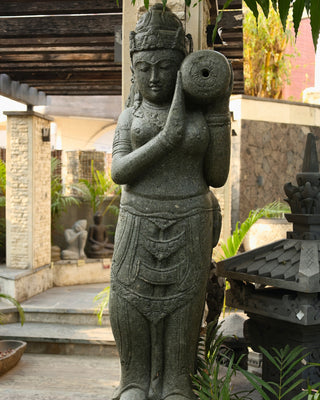 Embrace divine grace with this magnificent Devi Fountain Right, a sculptural water feature that venerates the sacred feminine principle through refined artistic expression. The elegant form radiates spiritual majesty as water flows with ethereal beauty, creating a harmonious symphony of movement and sound that invites profound contemplation. This culturally significant piece transforms gardens into consecrated spaces of devotion and inner awakening, blending timeless spiritual symbolism with contemporary design sophistication. The cascading water amplifies the sense of divine blessing and benevolence, establishing an atmosphere of reverent tranquility. Perfect for those seeking to honor sacred traditions while elevating their outdoor environments with artistic authenticity and spiritual depth, this fountain serves as a powerful focal point that celebrates the eternal feminine divine. An ideal choice for creating meaningful garden sanctuaries that resonate with cultural heritage and timeless elegance.