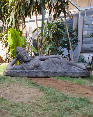 Give your home or garden a touch of serenity with this Large Dignified Resting Devi Stone Statue! This elegant figurine will add an air of calmness and meditation to your space.