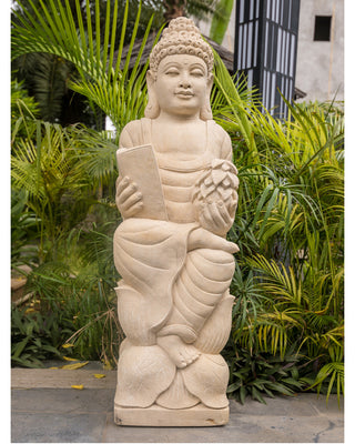 The Reciter Ganesha Statue is a beautifully crafted representation of Lord Ganesha, the Hindu deity of wisdom and prosperity, depicted in a traditional sitting posture, holding a sacred book in one hand and imparting blessings with the other. This intricately detailed statue captures the divine presence of Ganesha as the patron of knowledge and eloquence.