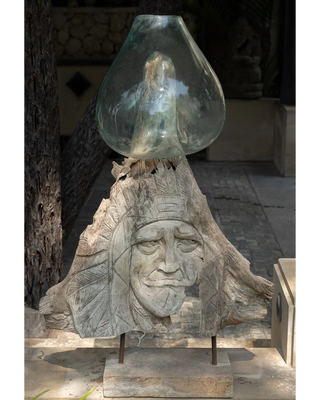 Indulge in the allure of a head-shaped wooden artefact, hand-carved with exquisite detail, inviting you to embrace the harmonious blend of artistry and nature's grandeur.