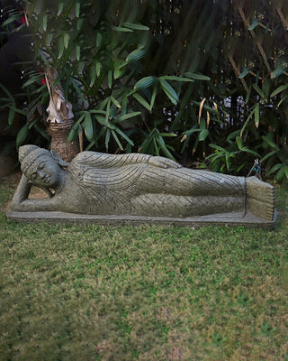 Indulge in a touch of serenity with our Lying Buddha Statue. Perfectly crafted in exquisite detail, this luxurious piece adds an air of tranquility to any space. Its graceful pose and serene expression evoke a sense of inner peace and enlightenment. Elevate your space with elegant, timeless beauty.